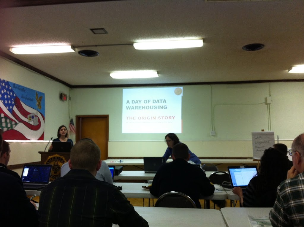 Audrey and Julie basically worked the scenario of a pie business with no infrastructure moving through the process of growth and implementing a data warehouse with regular ETL. They essentially divided the material into two sections: database concepts and data warehouse design (Audrey) and ETL/SSIS (Julie). This format worked out well as a representation of what happens with job roles in the real world and they had great and entertaining banter between the two of them. I particularly enjoyed Audrey’s exercise in data modeling.