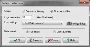 - Refresh the Cache Data via GSAK at regular intervals – Periodically, especially after new caches are entered via a Pocket Query, you will want to go through and refresh your entire cache database using the Placed Date intervals. Unless you are doing analysis using cache logs, the Light Format (10,000) limit is adequate and you can combine Light and Full to do 16,000 refreshes per day. Should an active cache be retired (archived) these refreshes will mark them as so.