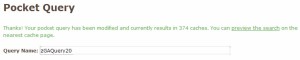- Use Pocket Queries for the Initial Load of Any New Caches – The hard part is completed! Going forward, use a Pocket Query, running say once a week or so, to download any caches placed after your date. This will keep the database up to date as new caches are released.