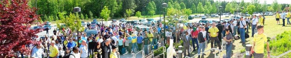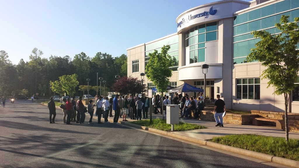 | Lineup of attendees outside of SQL Saturday Atlanta who did not pre-print their SpeedPASS admission |