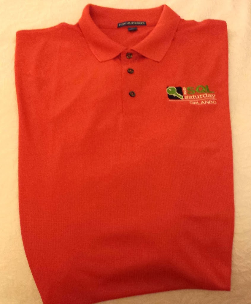 | SQL Saturday Orlando polo shirt, sold online prior to the event. Came out great! |