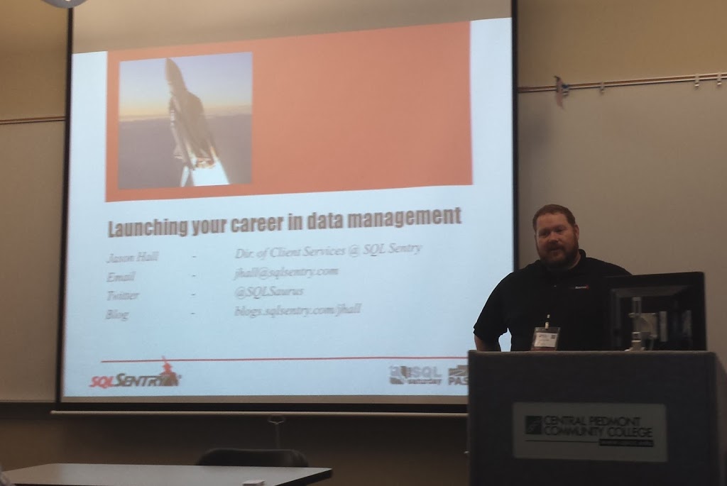 Following the fire drill, Jason picked back up where he left off and gave a very encouraging presentation for folks looking to transition more into data management with some excellent tips and pointers for making the jump.