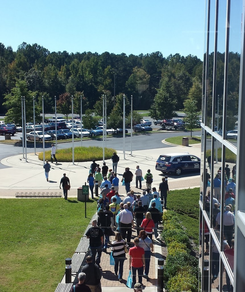 | The crowd filing out for an afternoon fire alarm at SQL Saturday #330 |