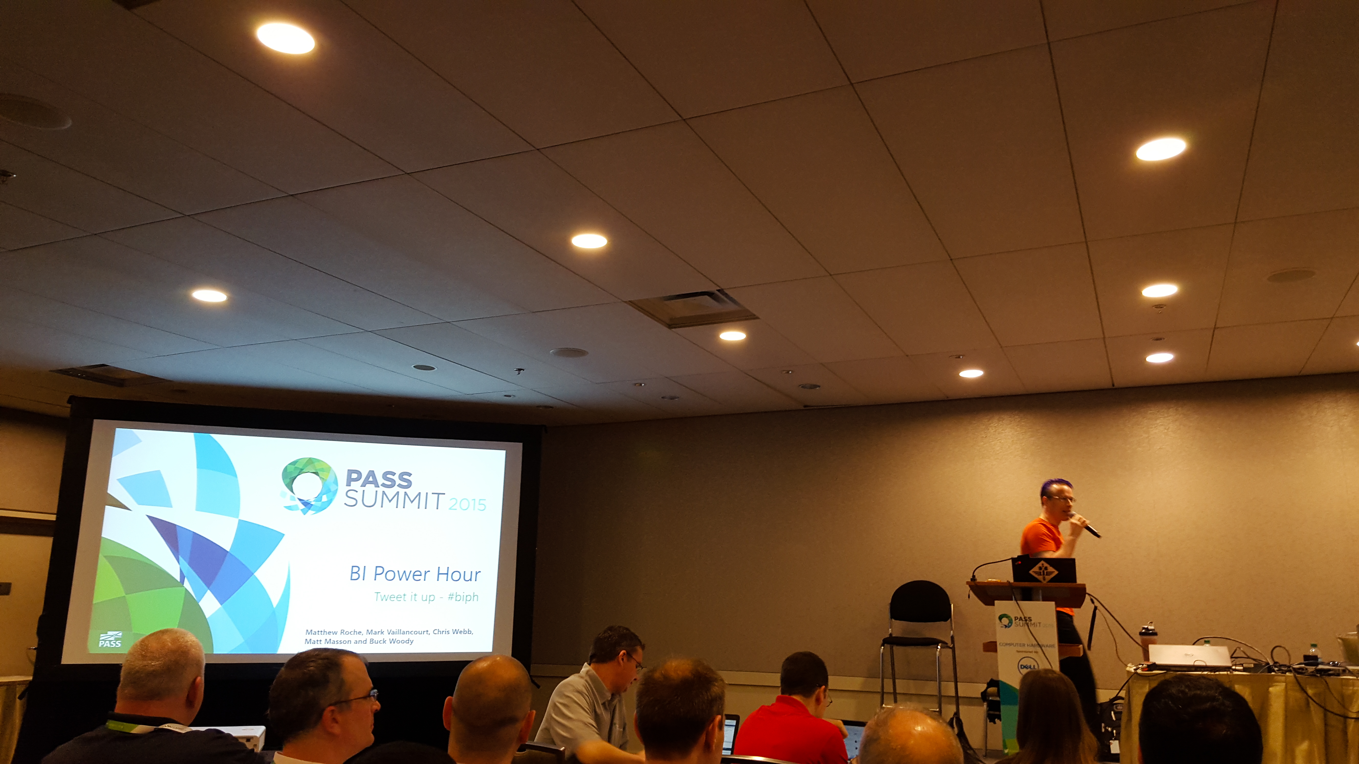 The BI Power Hour is hands down the best session of Summit. It’s always fun and hilarious and promises not to teach you anything. We had a full house for this one and it didn’t disappoint. New additions to the lineup, Chris Webb, Mark Vaillancourt and Buck Woody really added to the enjoyment of the BI Power Hour. Everybody in the cramped and packed room was rolling and laughing throughout the entire session, especially when Buck Woody started his YMCA bit.