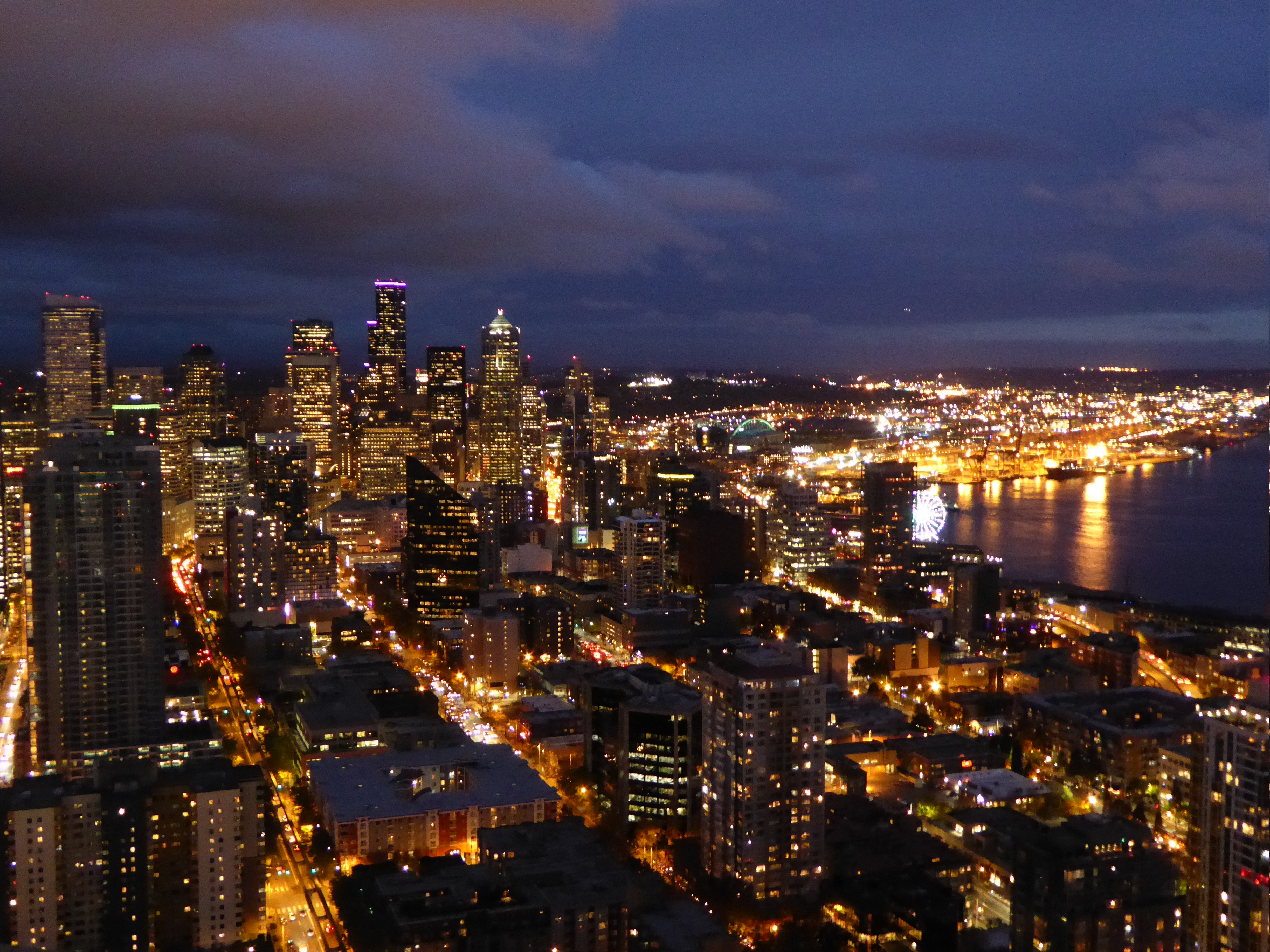 Summit definitely takes on a bit of a sadness once the last session concludes. Everybody knows its over and its time to leave and the week is over. Since I wasn’t flying out until the morning, I decided to do a little more sightseeing and headed over to the Space Needle to finally head to the top to check it out. The weather was actually pretty decent (not sunny, but at least not raining) and I’d read that one of the best times to go was just after sunset so you could see day and night in the same visit. I paid the fee ($22, yikes!) and headed to the top and had a great time.