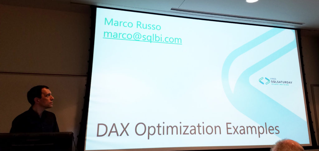 Marco Russo presenting “DAX Optimization Examples” — my favorite session of the day. He easily could’ve filled multiple hours with his content and I look forward to seeing him speak again whenever I next get the opportunity!
