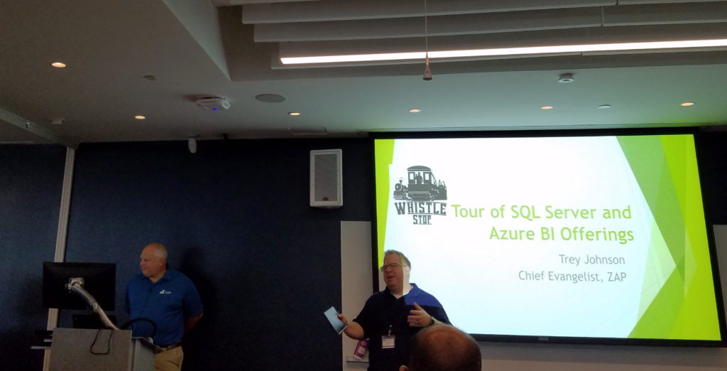Organizer Stuart Ainsworth starting things off with some morning announcements and Trey Johnson presenting his “Whistle Stop Tour of SQL Server and Azure BI” on Day 1 of Atlanta Azure DataFest.