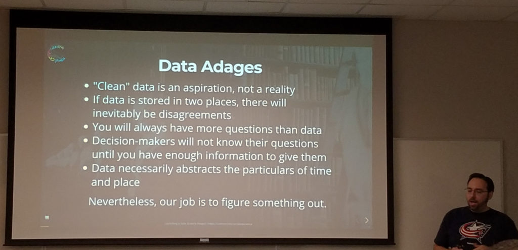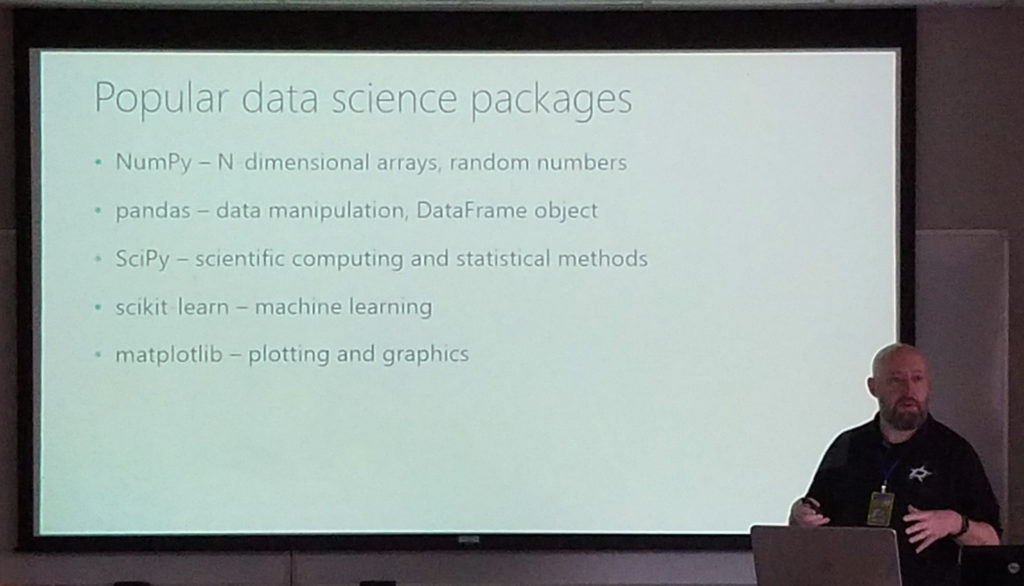 I usually (either consciously or unconsciously) theme the sessions I select to attend. The theme for this event was definitely Data Science, with a number of sessions on Python, Azure Data Bricks, R, and other data science technologies. It’s a pretty rare occurrence for a lunch session to be the most enjoyable of the day, but in this case, I really enjoyed the lunch session which I attended — a panel discussion on the future of the data professional, given by a number of well-known community speakers, many of which are or were Microsoft MVPs and many of which are current Microsoft employees. A really fun and informative session!