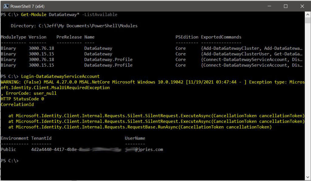 1. Run the Login-DataGatewayServiceAccount command within PowerShell 7 and authenticate as a user that is an administrator of the Gateway Cluster.