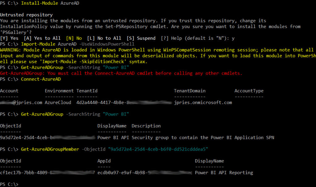 Get-AzureADGroup -SearchString “Power BI”