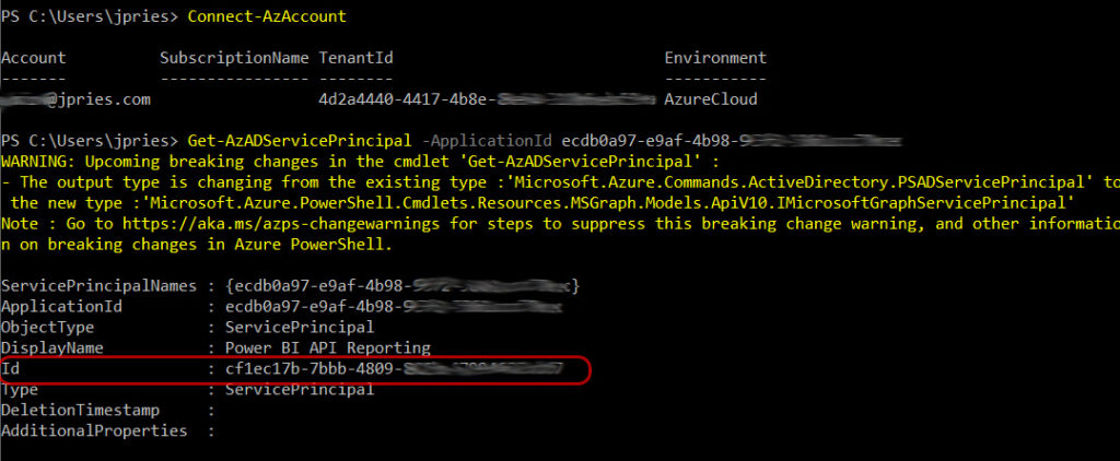 To get an SPN, you’ll need the application ID (which we got from the group member command above as our Application was a member of a group):